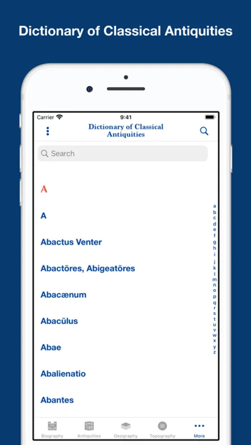 The dictionary covers Ancient Greek and Roman antiquities, mythology and literature.