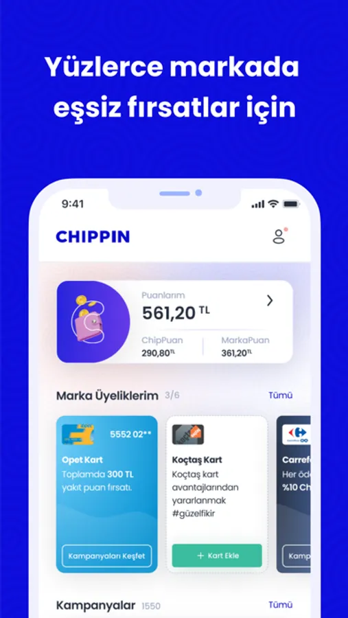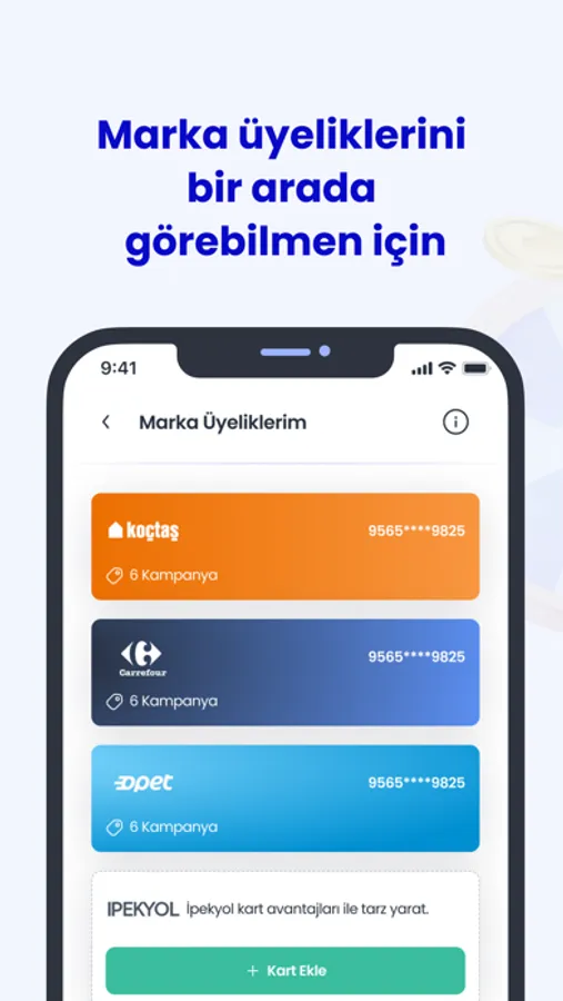 Varolan marka kartlarını ekleyebilir, yeni üyelikler oluşturabilir ve özel fırsatlardan yararlanabilirsin.