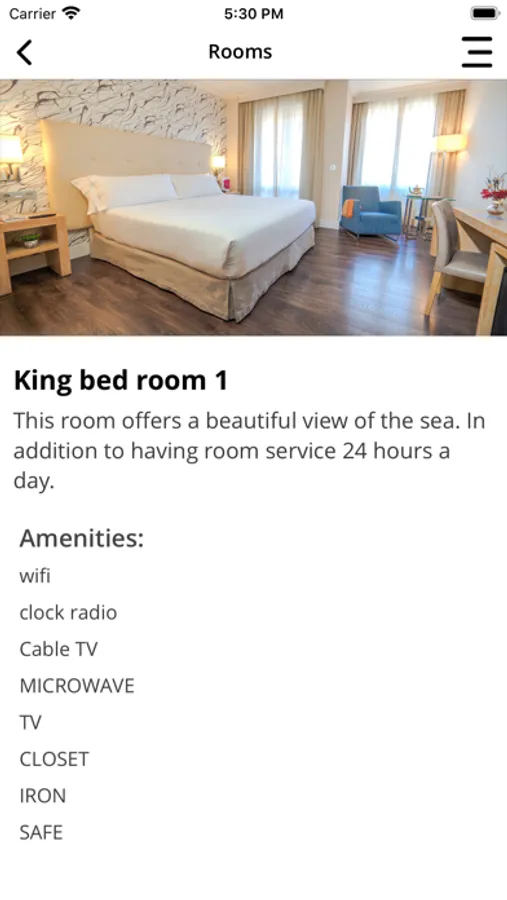 Also during your stay, this app will make available services such as: Pillow Menu; Ordering a product from the mini bar; Laundry Service; Ice and much more.