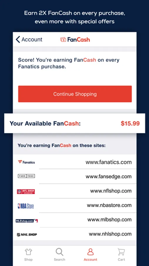 We’ve updated our FANATICS REWARDS so app users can get 2X Fan Cash! FANATICS REWARDS costs nothing to join and gives you: