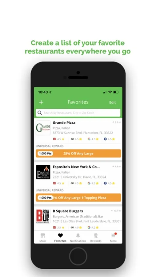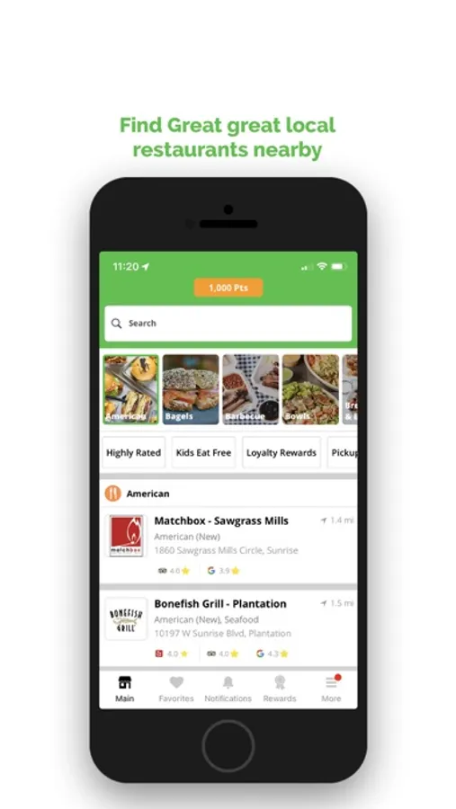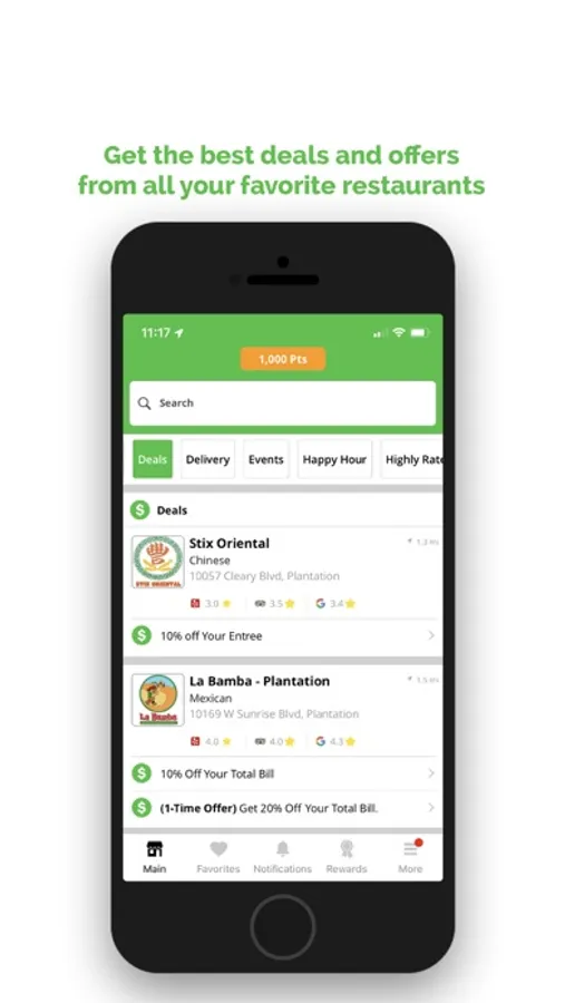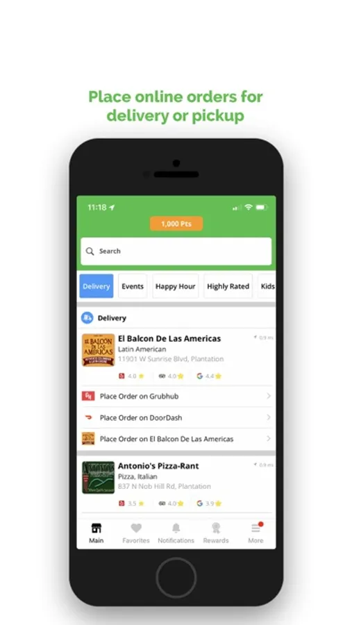 • Find your ideal restaurant by quick searching from food types to delivery to deals to happy hour and