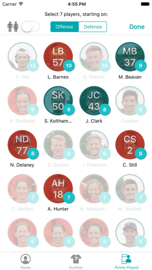 During half-time, check how players are performing to gauge their pitch-time. Filter players by how many points they've played to see who needs to get on and who's being overworked.