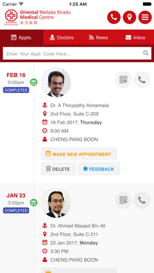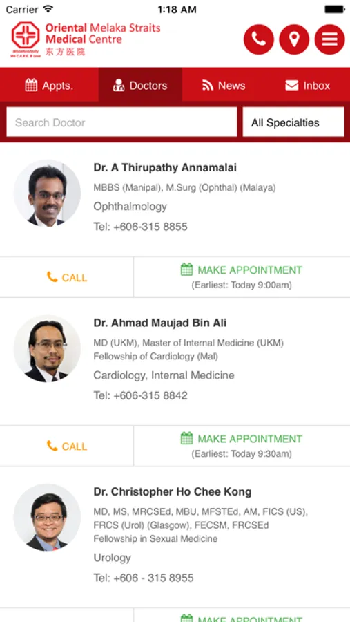 OMSMC Mobile App provides you the convenience to make appointment with our doctors easily. You can check doctor's availability and choose your preferred arrival time.