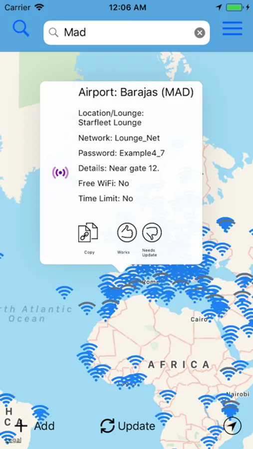 *Users can also add passwords they find from airports around the world. Those passwords are then sent to foXnoMad for verification and approval before they are added to the map.
