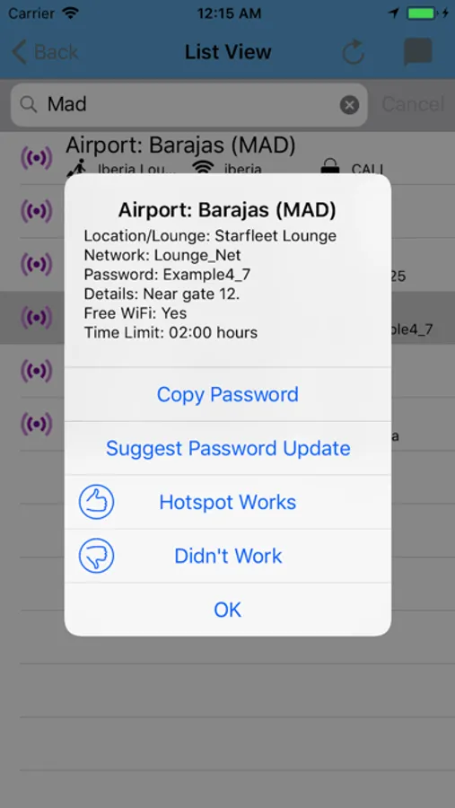 *In ‘List View’ you can update passwords for airports already added (when you’ve noticed some changes). As you travel you can also rate the wireless hotspot information to let us know if the details worked for you or not. Based on traveler feedback, the connection information is updated, verified, or removed.