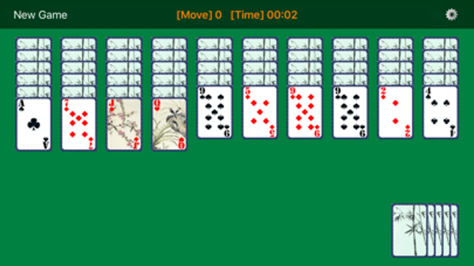 The main purpose of the game is to remove all cards from the table, assembling them in the tableau before removing them. Initially, 54 cards are dealt to the tableau in ten piles, face down except for the top cards. The tableau piles build down by rank, and in-suit sequences can be moved together. The 50 remaining cards can be dealt to the tableau ten at a time when none of the piles are empty.