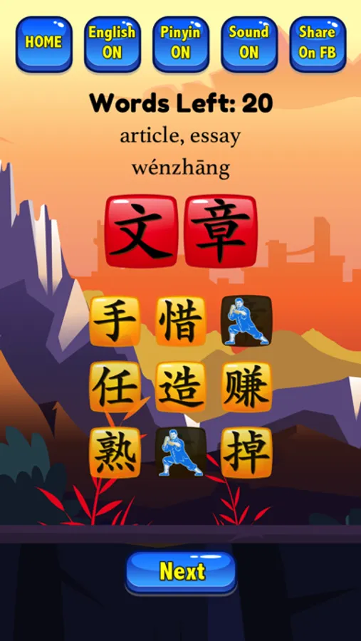 ** Thailand - Another five star app worth the download! I am absolutely enjoying this thank you so much for creating this game! I get to learn Chinese as well as have a fun time doing so. Brilliant and fully deserving of five stars. I truly love this app!