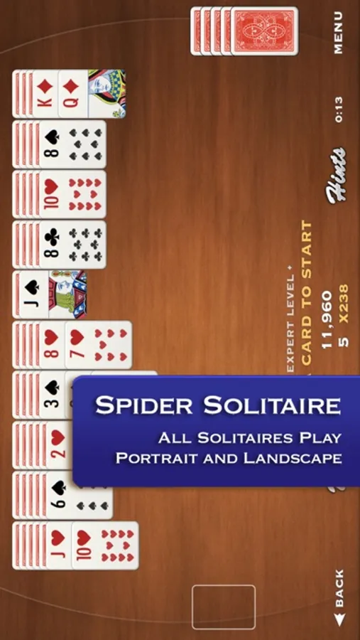 Enjoy its three solitaire games: Classic Solitaire (also know as Klondike), Spider Solitaire, and FreeCell Solitaire.
