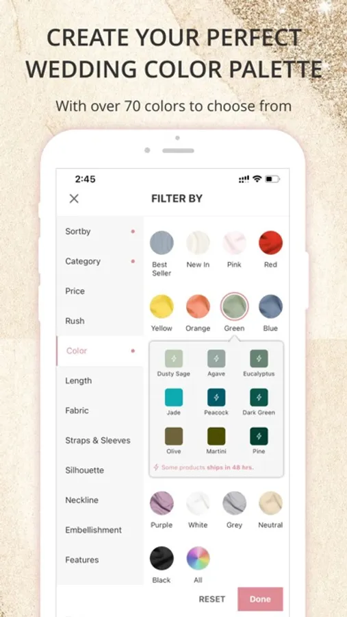 ~ Choose from 80 color choices and 300+ formal fashion styles before choosing the perfect design for your big day.