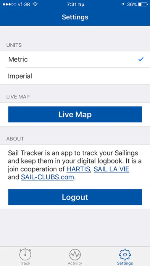 Sail Tracker is an app to track your Sailings and keep them in your Sail-Board (digital logbook) at Sail-la-vie.com. The app is used to track route sailings. Either sailing club members or Sail-la-vie.com customers can use this app to record, when they are at sea, the route they follow.