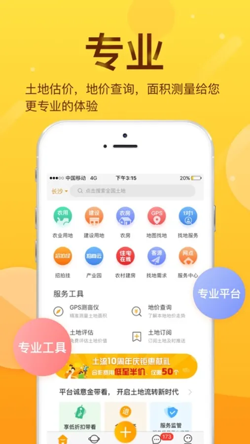 4.专业行业工具,终身免费使用。土流网测亩仪,依据GPS卫星导航全球定位系统精准测量,手持仪器绕土地一周,即可测算出面积、周长、海拔、坡度等数据并上传云端保存。土地估价软件,利用网络大数据,评估土地价值。查地价功能,了解周边省份地市土地价格行情,决策城市发展和农村投资。