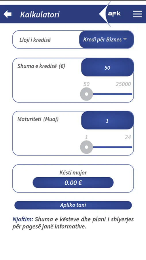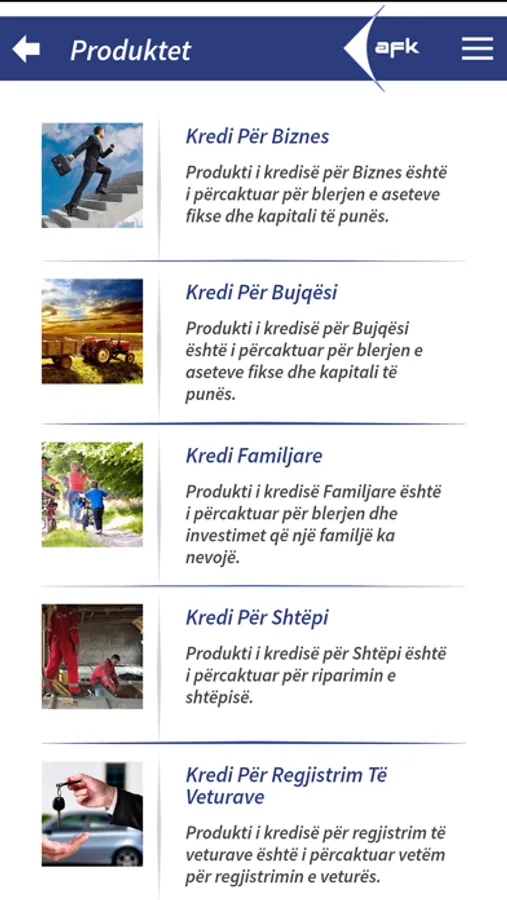 AFK Microfinance Kosovo mobile application
