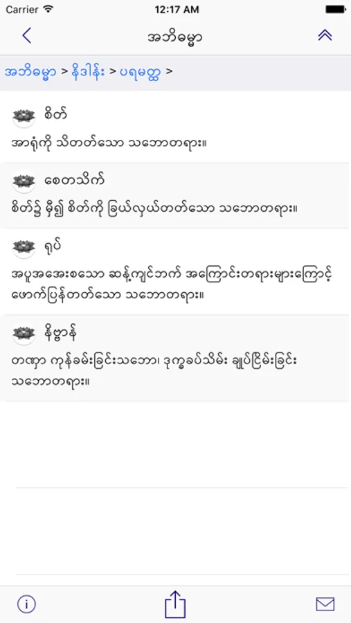 This application is catered for those who are interested in learning Abhidhammattha-sangaha in Burmese. The content is organized in a comprehensive hierarchical structure with simple explanations and descriptions.