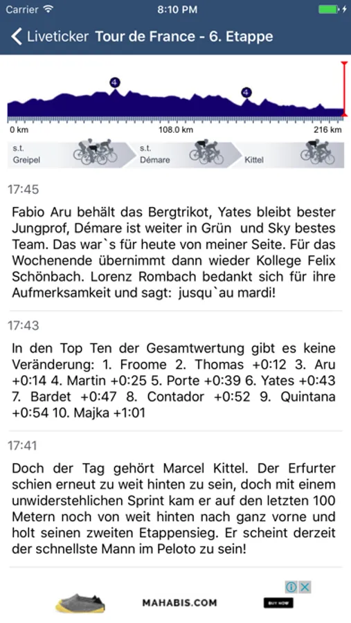 ▶ Der Live-Ticker informiert sie in Echtzeit über den aktuellen Stand der wichtigsten nationalen und internationalen Rennen.