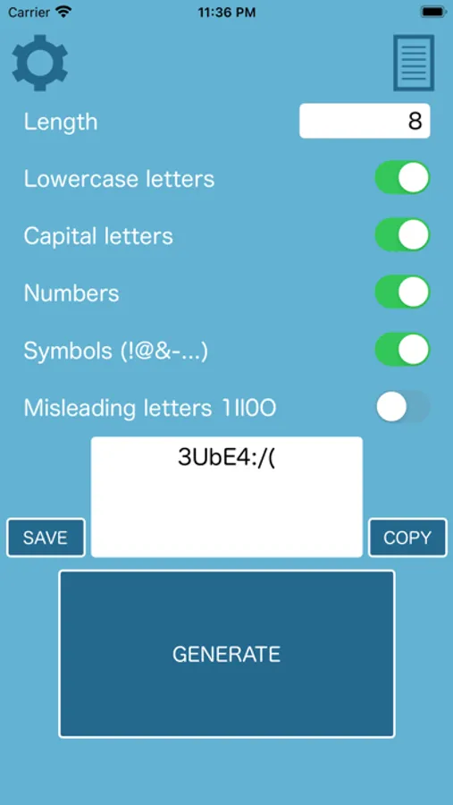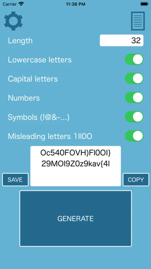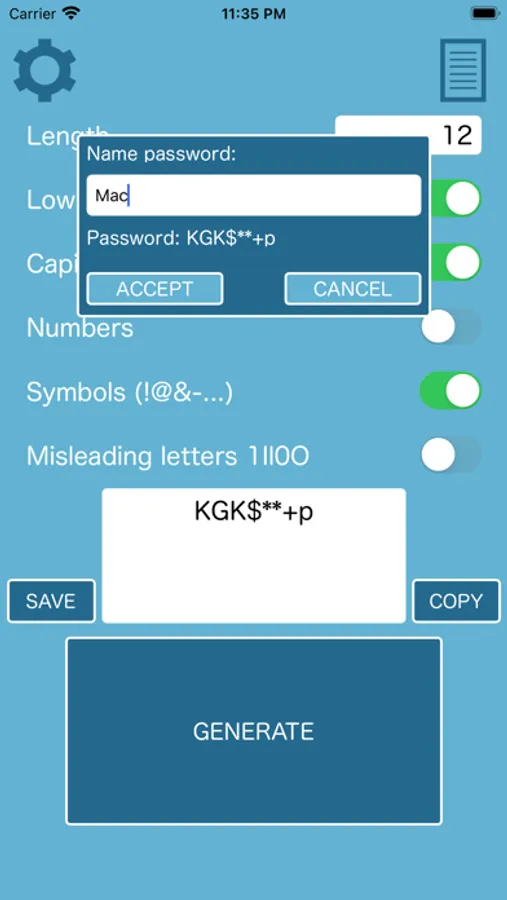 - Select the options for your password (uppercase letters, lowercase letters, numbers ...).
