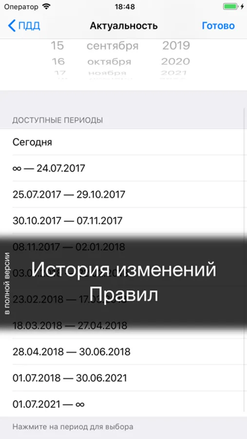 В базе Программы сохранена история изменений Правил, что позволяет выбрать дату и посмотреть какой текст был, есть или будет.