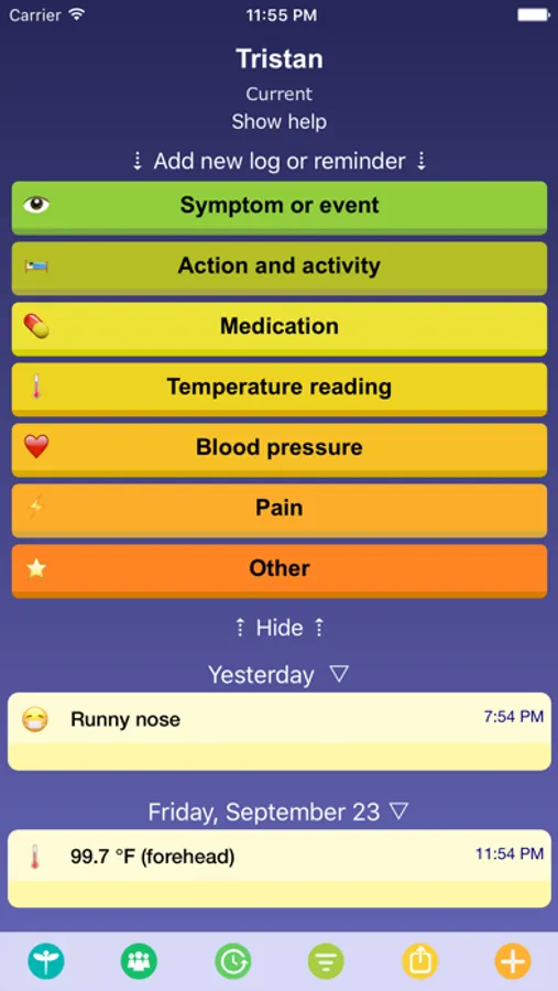CareLog makes it easy to track acute illnesses for family members. It is designed for parents, care givers, or anyone needing to track one or more persons. For example, tracking flu symptoms for multiple children.