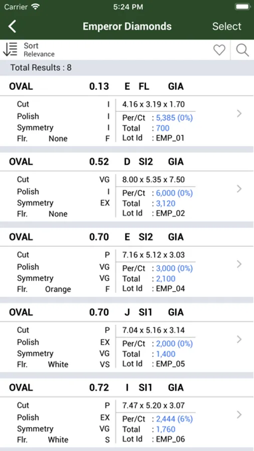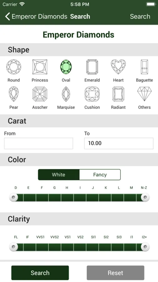 With the Emperor Diamonds application, you can quickly and easily find out diamonds. Just enter the stone's parameters (carat, clarity, color,) into this simple and user-friendly application and get full stock list of our diamonds.