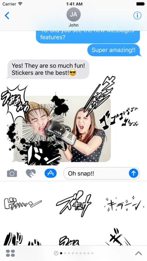 Say hello with this pack of Japanese Manga stickers. You can peel and place these stickers on anything in your conversation — bubbles, images, or even other stickers.