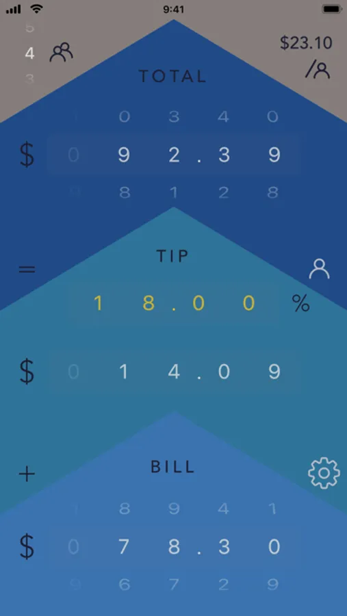 * Enter your bill at the bottom, optimized for easy thumb reach