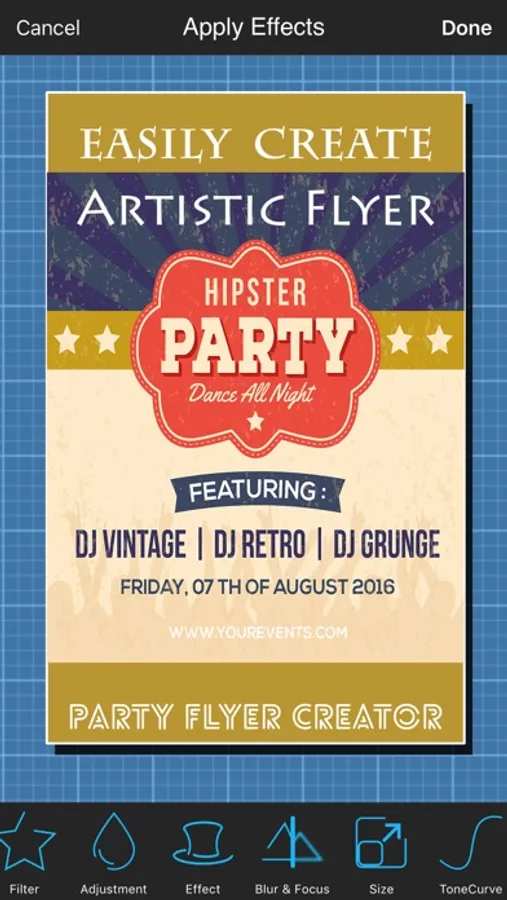 Flyer Creator for Parties, Promotions, Music, Leaflets and more.