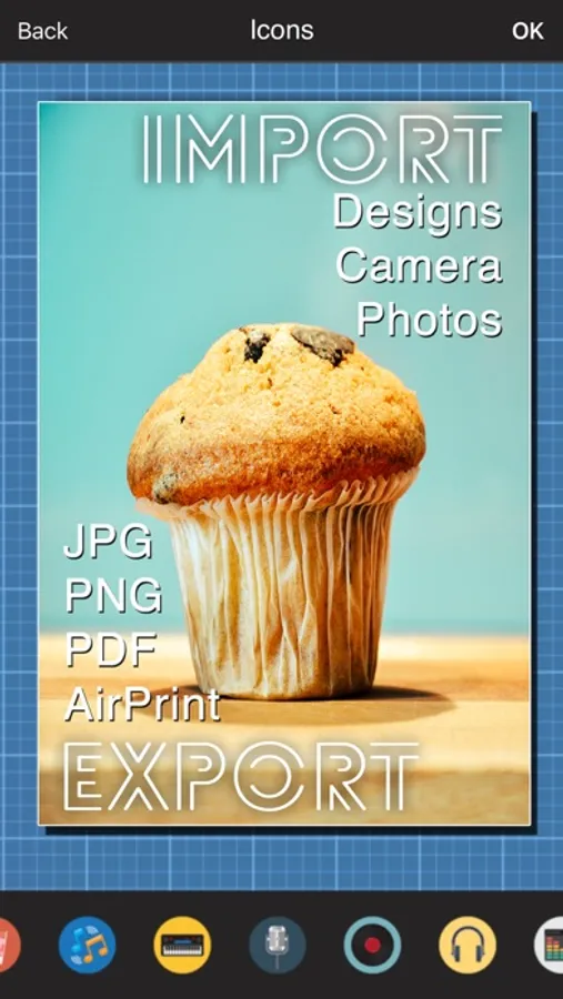 - Import JPEG or PNG /with transparency