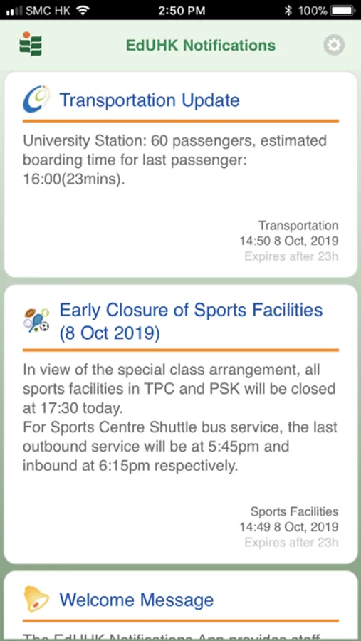 EdUHK Notifications provides staff and students a convenient way to receive EdUHK information and alerts with smartphones.