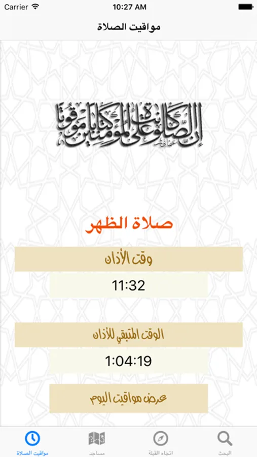 ٥- مواقيت الصلاة مع عداد تنازلي