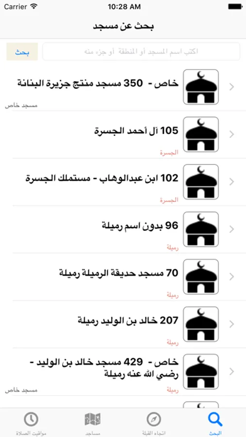 ٦- امكانية البحث باسم المسجد