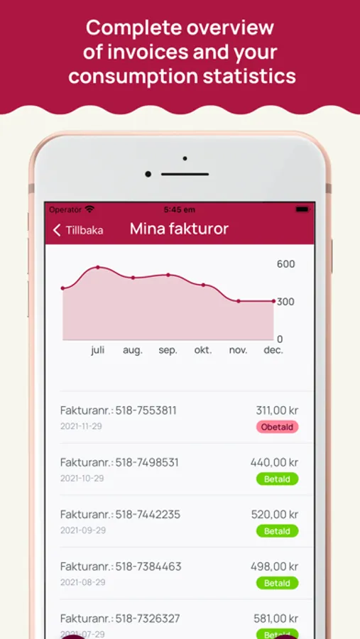 • Get a good overview over services, extra services, usage, invoices, time of agreement and more