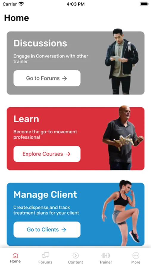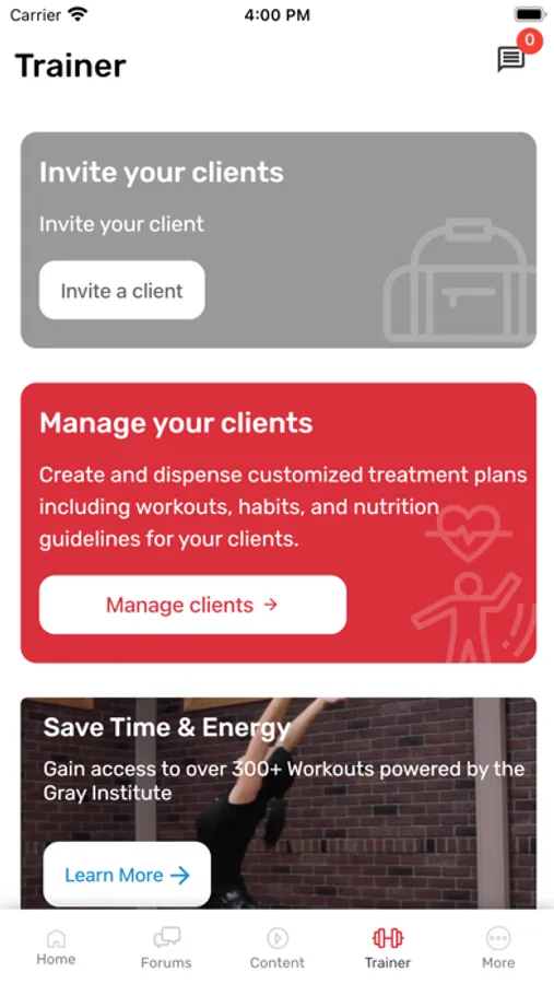* Trainer Module where you can produce content, purchase workout templates, to dispense to the people you serve.