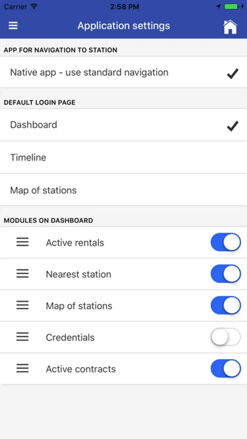 Application displays info, news, FAQ, contacts, map of stations with number of free locks and bicycles.