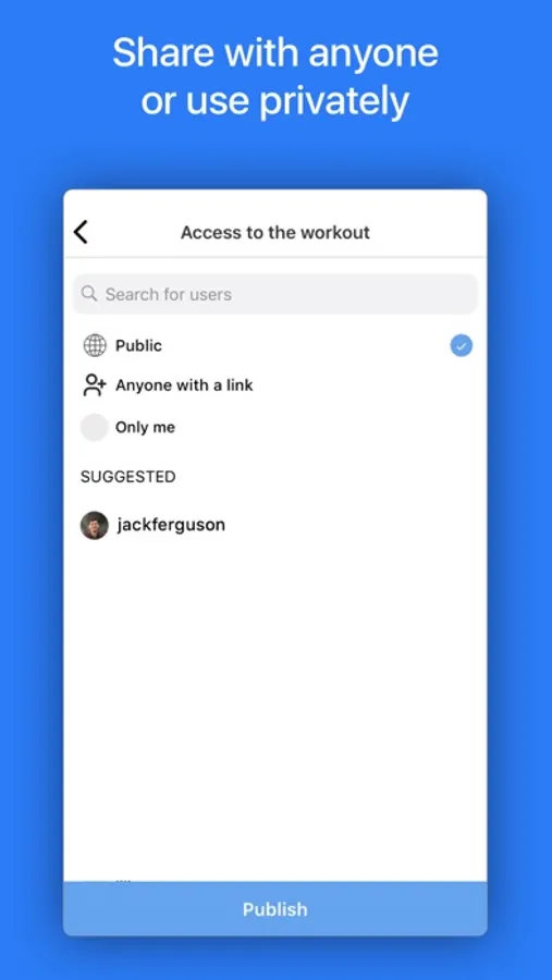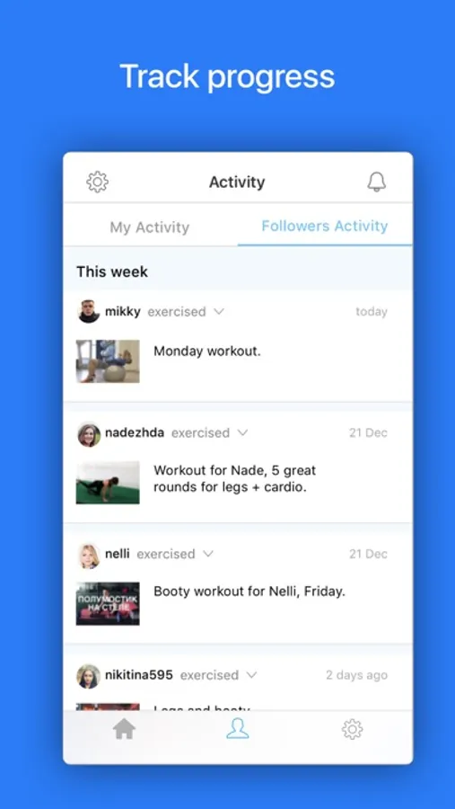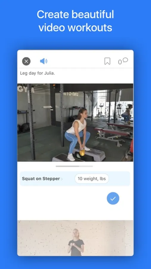 Make private workouts that only specific clients could have access to. Track progress and keep clients accountable. Get notified about finished workouts. Chat in the comments.