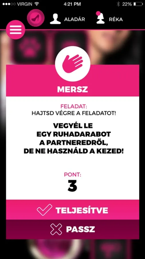 A játékban egy virtuális társasjáték mezőn kell végighaladnod a pároddal, miközben különféle feladatokat teljesítetek. Maximum 5 páros mérkőzhet meg egymással a kétféle játékmódban. Csak a bátorságotok és gátlásaitok szabhatnak határt abban, mit vállaltok be.