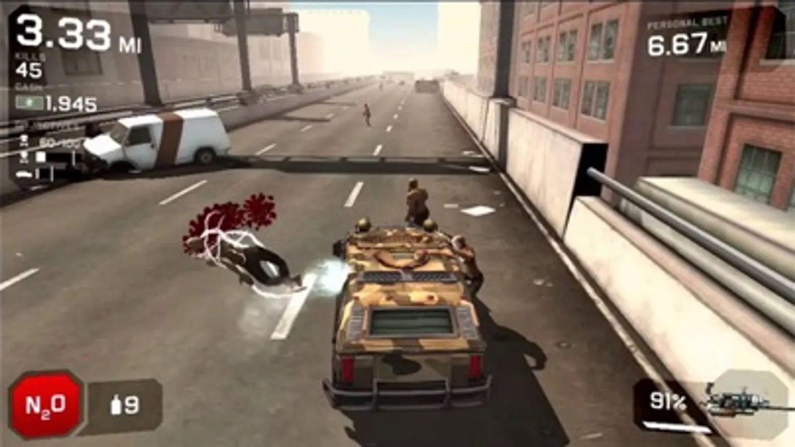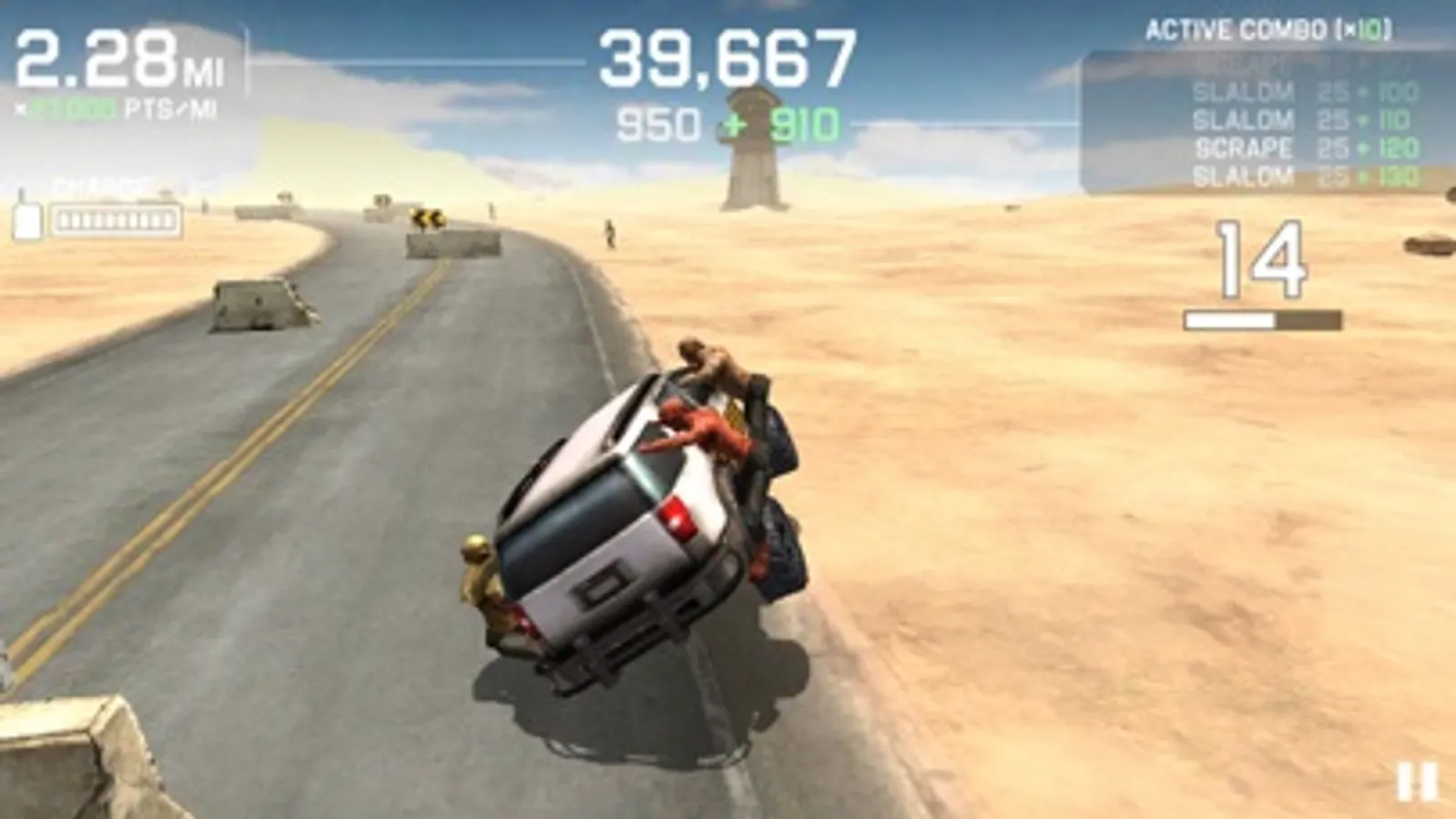 Steer to avoid obstacles all while trying to SMASH latched on zombies into debris - OR - run them down before they can