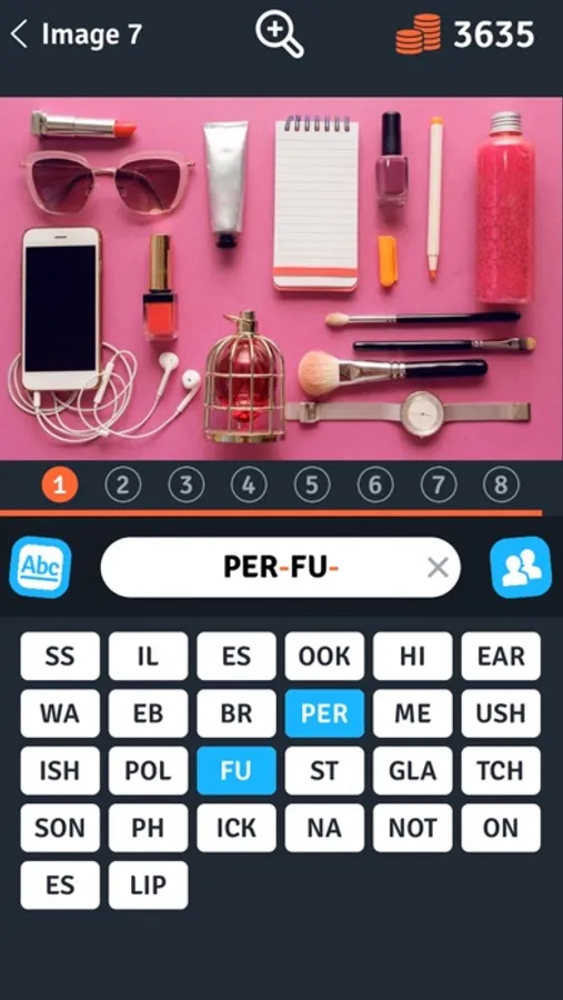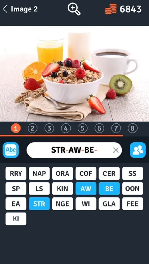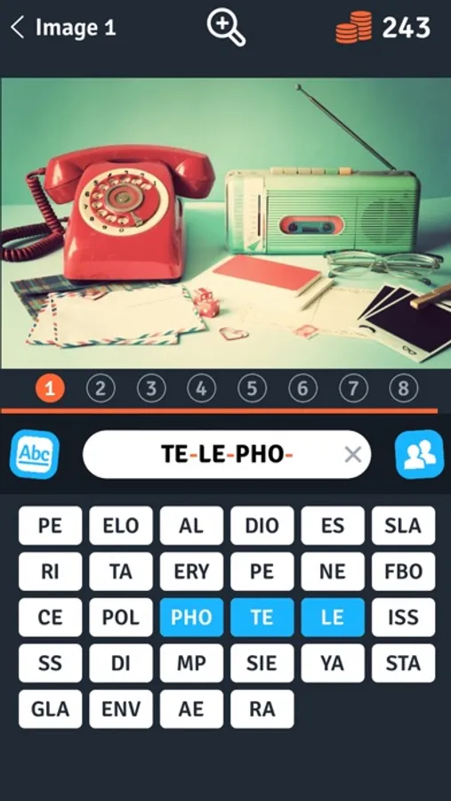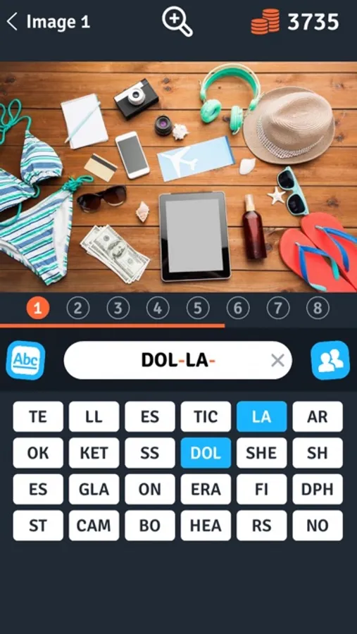 The rules are simple: 1 image, 1 puzzle of letters, 8 words to guess.