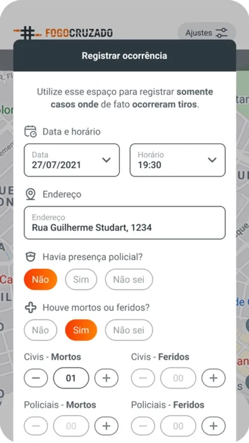 O app permite que qualquer cidadão compartilhe dados toda vez que presenciar ou ouvir um tiroteio. Ao preencher um formulário simples e seguro, a informação é transformada pelo app em uma notificação em um mapa.