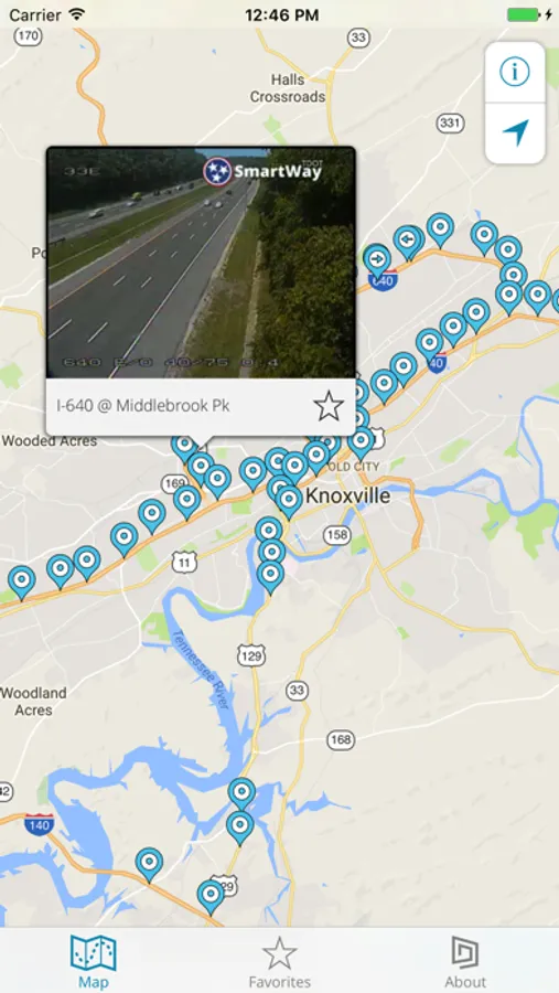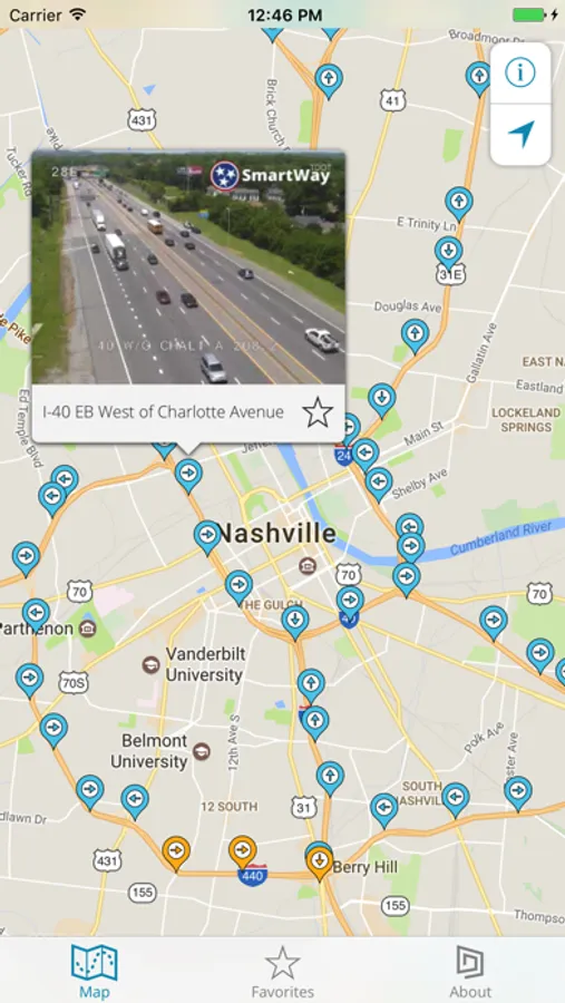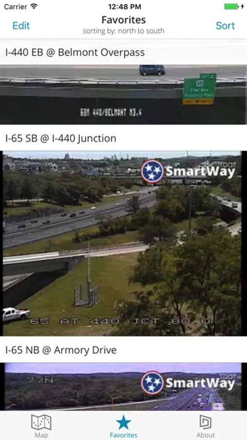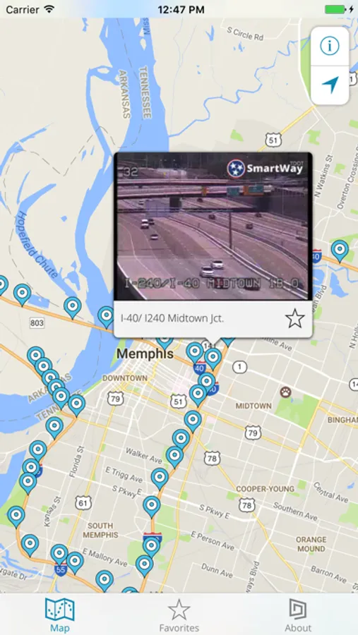 The Smartway mobile app provides a quick and easy way to view TDOT's live-streaming traffic cameras across the state of Tennessee.