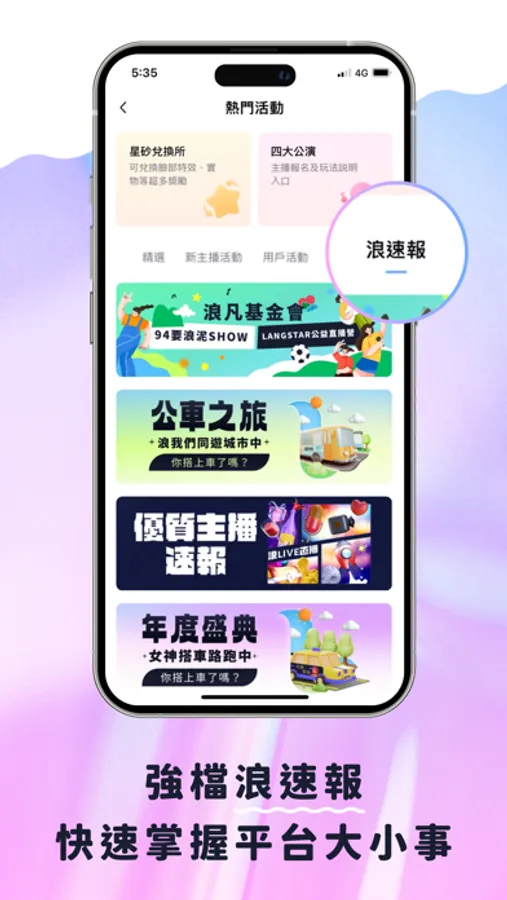「最獨一無二的娛樂生活體驗,就在浪LIVE直播!」
