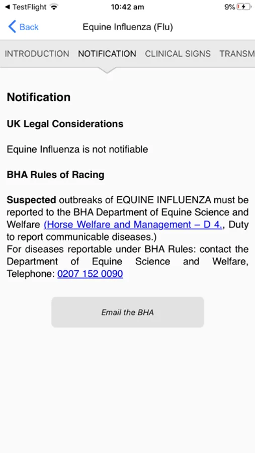 This app will ensure you have reliable advice on equine disease control always available wherever you are. The comprehensive biosecurity section covers how to minimize contagious disease risk with practical advice on management of horses, staff, visitors and the environment and checklists for dealing with sick horses. The app includes the HBLB Codes of Practice for Breeders and NTF Codes of Practice for Racehorse Trainers. Clinical conditions and techniques are illustrated with video and stills. The app will help you comply with sporting authority vaccine regulation and legal obligations for disease reporting, and it calculates CEM disease risk for individual broodmares and stallions.