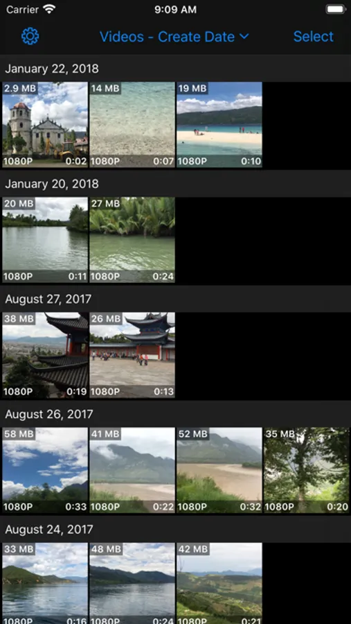 - View videos in the orders of creation date, modification date, file size and albums