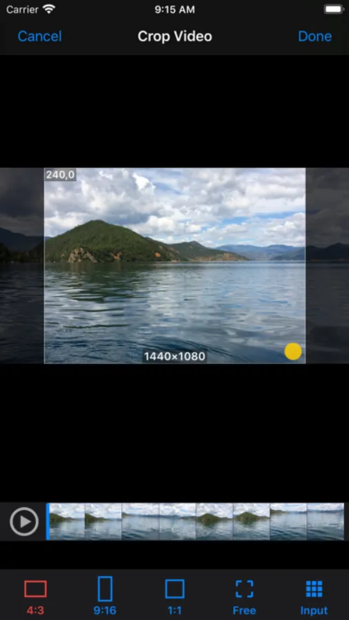 - Touch the lower right corner of the cropped video, drag to adjust it's resolution