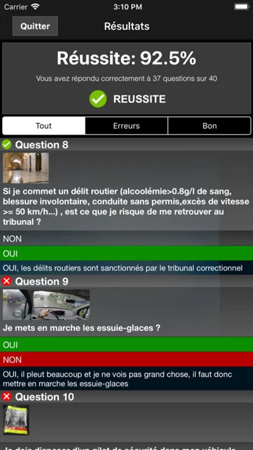 > Contient des questions pour l'apprentissage de la conduite automobile compatible avec la réforme de 2016 de l'examen du permis de conduire français.