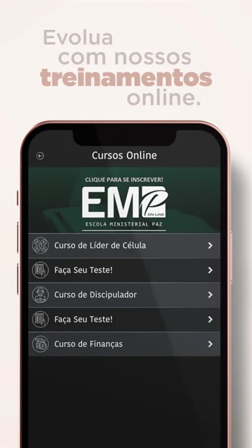 Acesse recursos de Célula, Mensagens, Devocionais, Galeria de Fotos e muito mais...