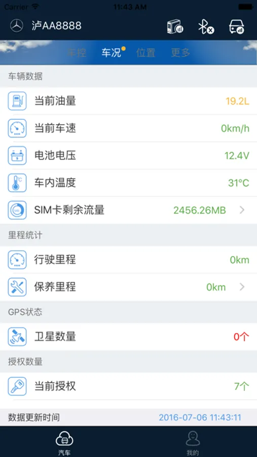 2.可以通过网络时时查看车辆信息,如:车辆位置、车内温度、当前油量等。