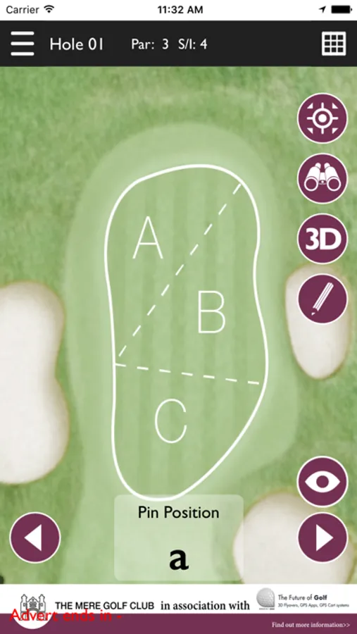 The app features the Whole in One Golf GPS Range Finder and Digital Guide to playing the clubs 18 hole golf course. The App works as an virtual aid, giving you a 3D Flyover of each hole, a pin positioning system.