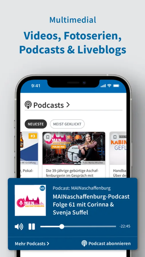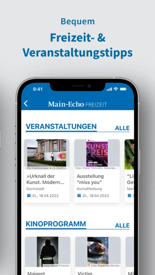 Die Main-Echo App enthält Artikel, Fotoserien, Videos, Liveblogs, Podcasts, Freizeittipps und Dossiers. In den Main-Echo Dossiers sind alle Artikel zusammengestellt, welche zu einem für unsere Region relevanten Thema erschienen sind. Durch unsere Liveblogs haben Sie die Möglichkeit, Ereignisse live mitzuverfolgen, wie beispielsweise aktuelle Spiele und News der Viktoria Aschaffenburg oder des TV Großwallstadt. In unserem Freizeitbereich können Sie sich von unseren Veranstaltungsvorschlägen inspirieren lassen und Ihre Freizeit ganz bequem planen.