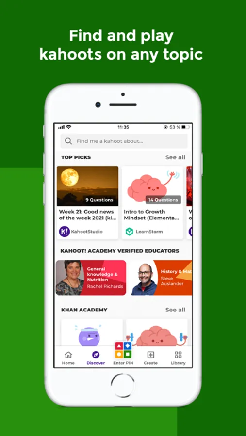 Play engaging quiz-based games (kahoots) at school, at home and at work, create your own kahoots and learn something new! Kahoot! brings the magic of learning for students, teachers, office superheroes, trivia fans and lifelong learners.