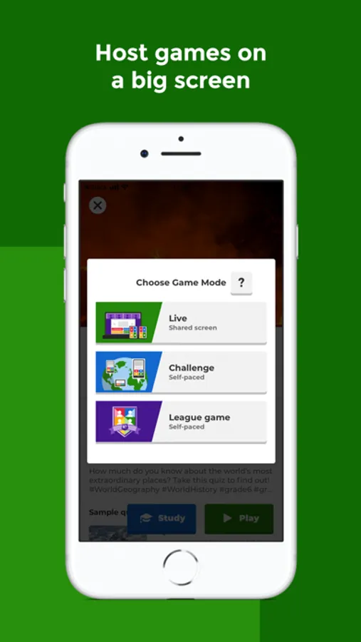 - Join kahoots hosted live - in class or virtually - and use the app to submit answers