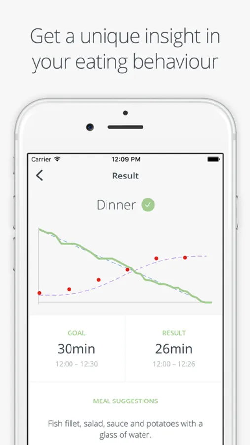 Periodically, you are asked to rate how full you feel. With the help of a second reference curve that appears on the screen, you learn to know how full you should be feeling over the course of a meal.
